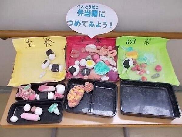 また、3月5日(金)は送別遠足でお弁当の日となっています。耳の日の掲示物と同じく東階段にお弁当の見本が飾ってありました。紙面で見るより、ご飯やおかずの量などが一目でわかる力作となっています。こちらもぜひご覧になってください。