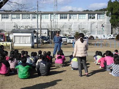 運動場に避難した後、西都市消防本部の方からお話をしていただきました。お話は、次のような内容でした。