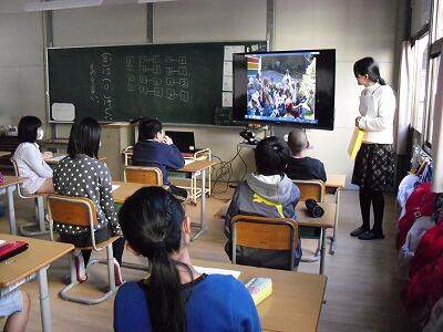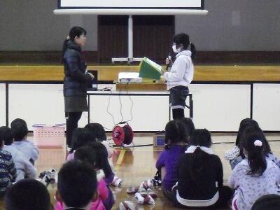 最終日の21日には、多目的ホールで、下級生を楽しませる「ジャンケン列車」や「県名のビンゴゲーム」など、いろいろなゲームを教えてくださいました。