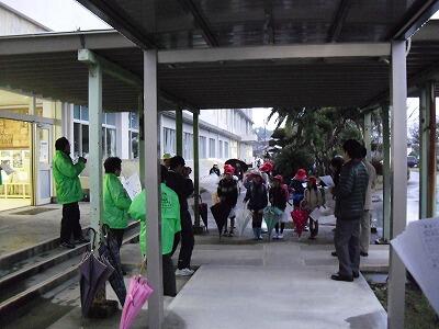 毎学期始業日に、三納地域づくり協議会の方々を始め、民生児童委員の方々やPTA役員の方々が校門や児童生徒玄関付近に立って、子どもたちを迎えてくださいます。3学期も子どもたちを元気づける「激励チラシ」を配りながら、子どもたちを迎えてくださいました。