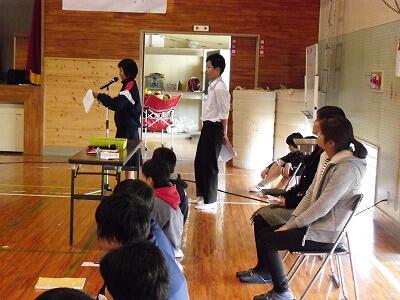 全国学校給食週間(1月24日~30日)に合わせ、本校でも1月18日~22日を「給食感謝週間」として、給食に携わる人々に感謝するとともに、食べ物への感謝の気持ちを育てる取組をしました。その一つとして、1月20日(水)に妻中学校の学校栄養職員の吉田先生と給食調理員の甲斐さんをお招きして、「給食感謝集会」を行いました。吉田先生は、給食の献立を考えてくださり、甲斐さんはおいしい給食を毎日作ってくださっています。
