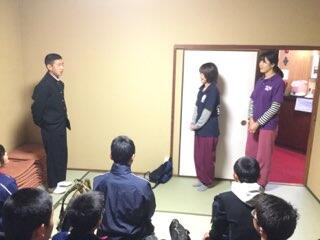 講座ではまず認知症と聞いてイメージすることを考えました。次に認知症についてのDVD視聴や講話を聞いて、認知症の症状について理解を深めました。その後、「認知症のおばあさん」の寸劇を見せていただきました。寸劇は認知症の周りの人の対応の悪い例とよい例の2パターンで構成されており、子どもたちは認知症を患い、いろいろなことが今まで通りできなくなったおばあさんの困っている姿をみて、どのように対応すればよいのかをグループで真剣に話し合いました。