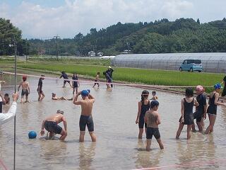 大人も子どももどろだらけになって、鬼ごっこやビーチフラッグ(ボール