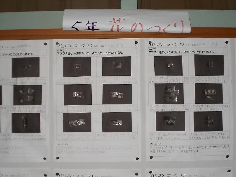 次は5年生の理科の授業で勉強している「花のつくり」の掲示物です。ちょっとわかりづらいですね。