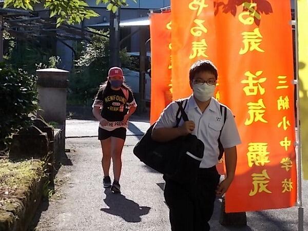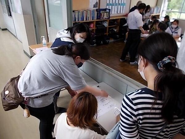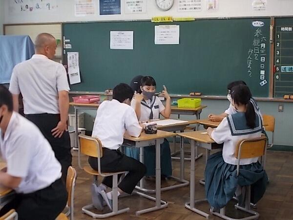 中学1年生は学活でした。保護者も一緒に授業に参加しています。