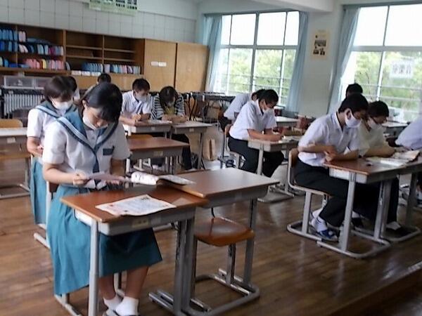 本日、5,6校時は中学部3年生のみ、県立高校説明会がありました。例年なら、全学年対象で行うのですが、今年は新型コロナウイルス感染症対策として3年生のみで実施しました。以下はその時の様子です。