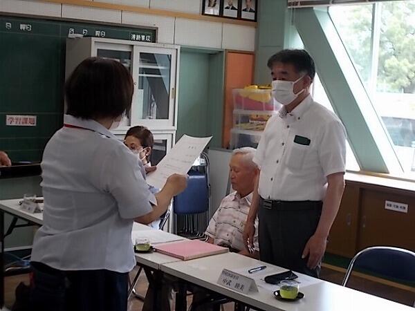 まず最初に評議員の方々に市教育委員会より委嘱状の交付がありました。