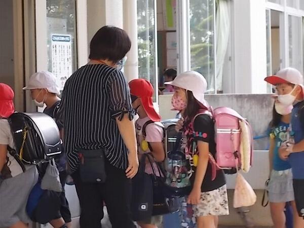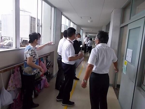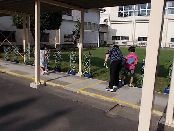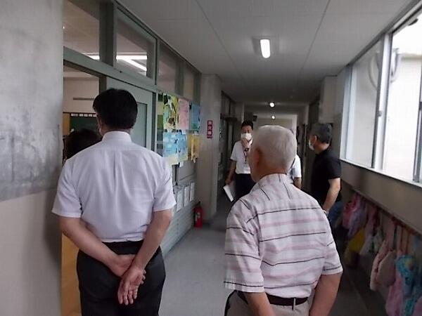 この教室の前の廊下にもたくさんのおうちの方がいます。