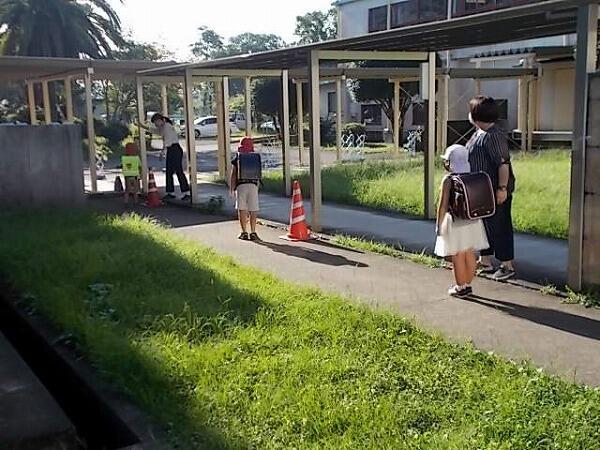 今朝の登校、ボランティアの様子です。本日もたいへん暑くなりそうですが、今日も元気に登校してきました。