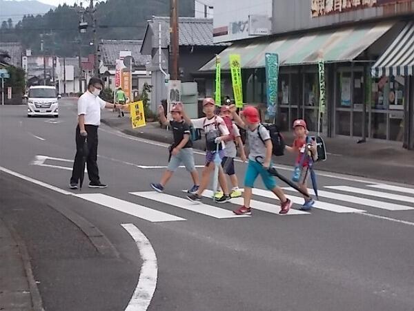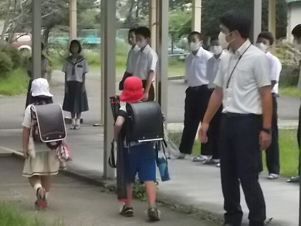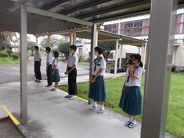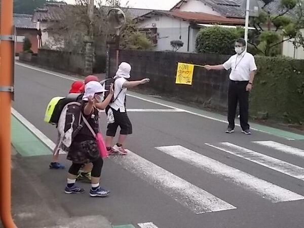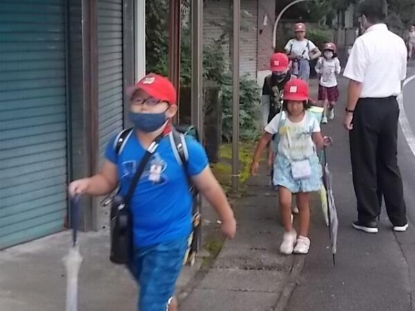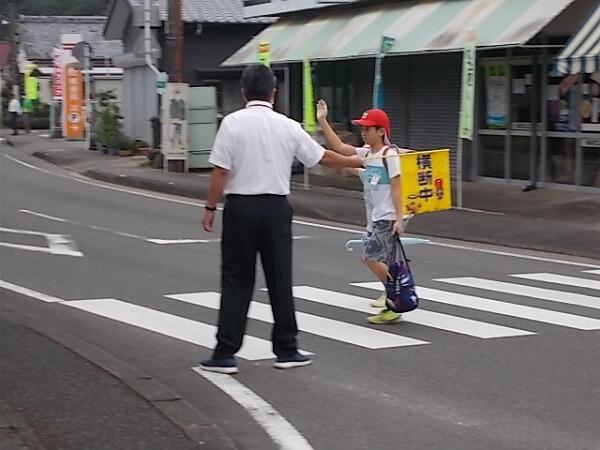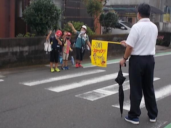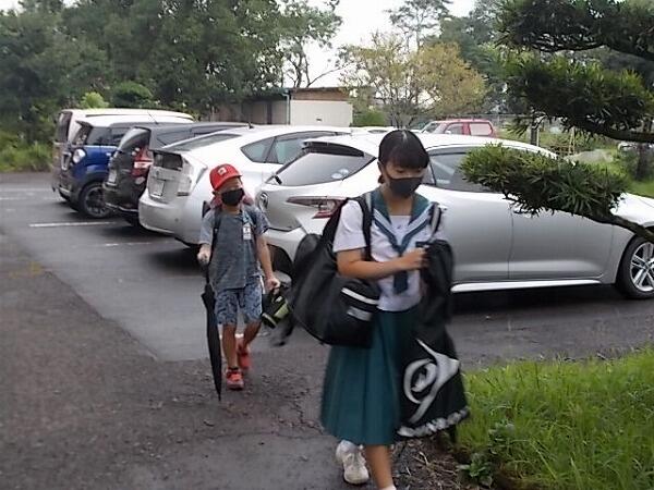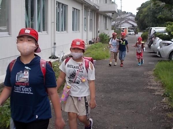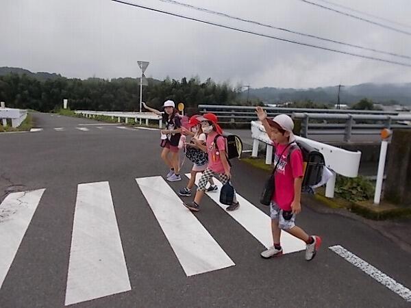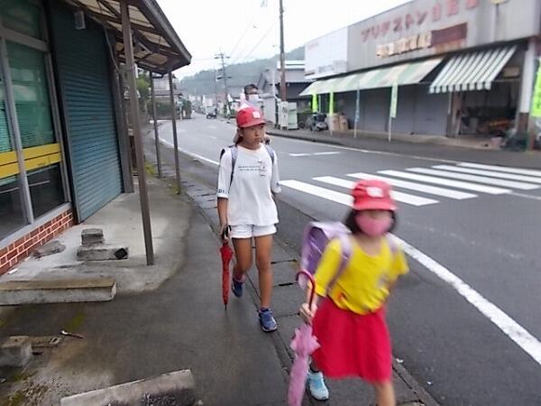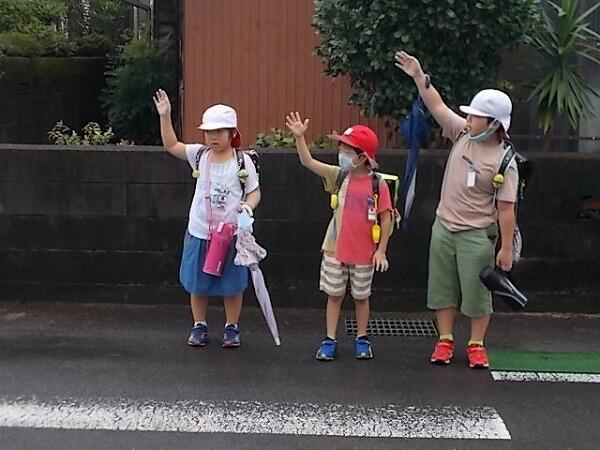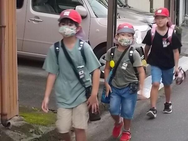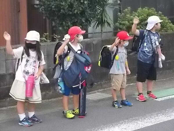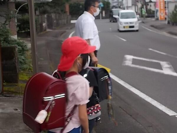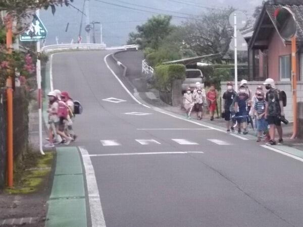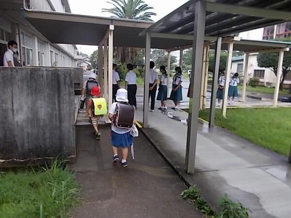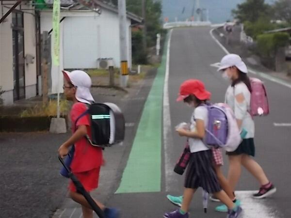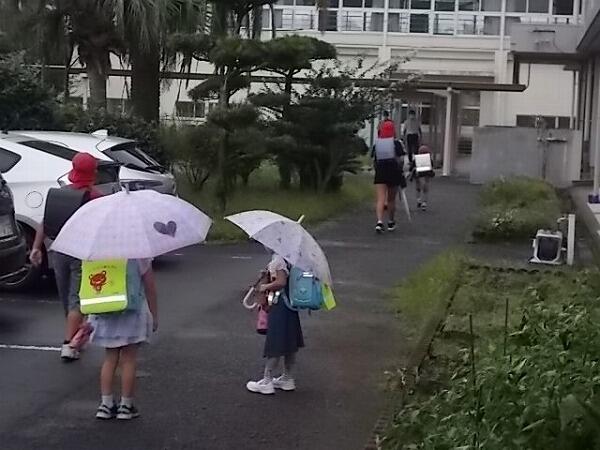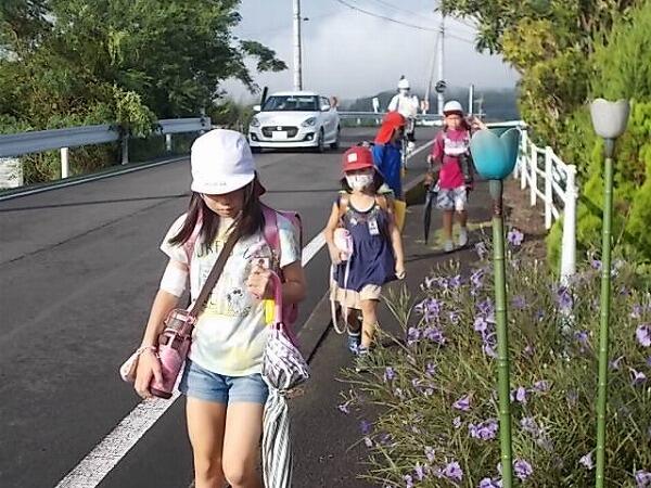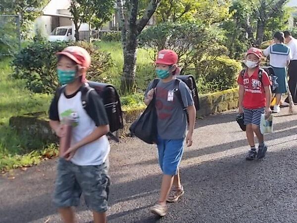 今朝の登校の様子です。台風が抜けて気持ちの良い朝となりました。
