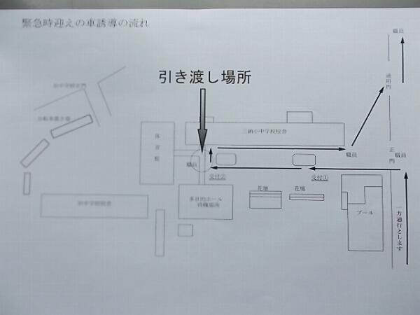 以下のアドレスをクリックしていただき、職員の誘導に従って学校敷地内の移動を行ってください。くれぐれも交通事故には十分ご注意ください。13時15分から下校になります。