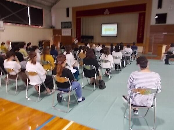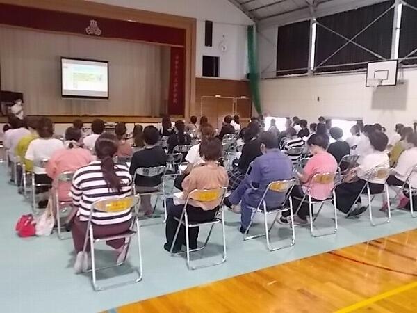 本日は午前中は小学部、午後は中学部の参観日でした。懇談の前に西都市教育委員会より西都市内中学校の統廃合と学校における働き方改革について説明をしていただきました。以下はその時の様子です。