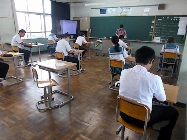 朝の会前の時間に「コグトレ」というものに取り組んでいます。これは認知 ○○ トレーニング(Cognitive ○○ Training)の略称で、文章を「読み取る力」を伸ばしたり、基本的な「みる」「きく」「想像する」力を強化しようとする取組です。以下は中学部の様子です。