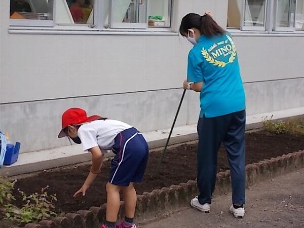 10月11日(日)に運動会が行われます。朝、小学部6年生が運動場の草抜きを行ってくれました。