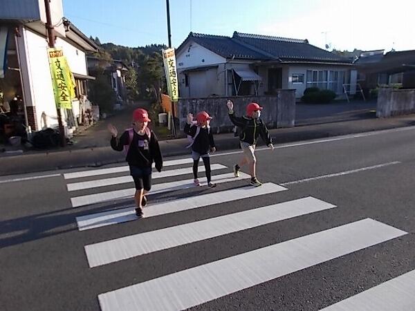 今朝の登校、ボランティアの様子です。中学生はテスト期間中ですので、朝のボランティア活動は6年生が率先して取り組んでいます。