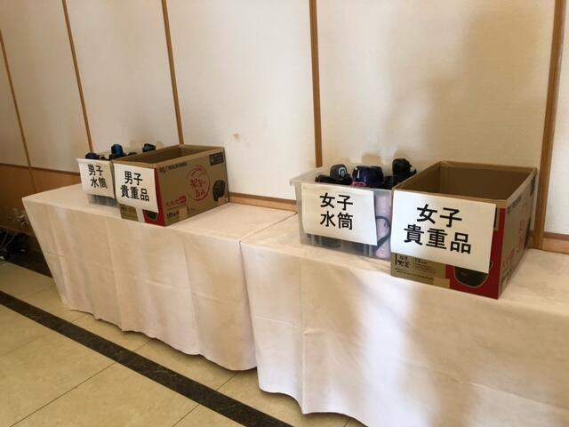 朝食会場後方には、昨夜預けた貴重品と水筒が置いてありました。