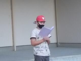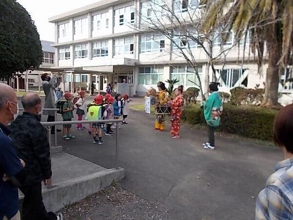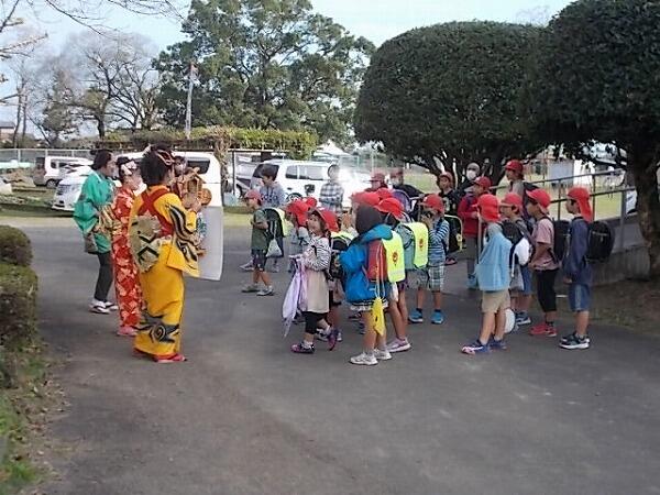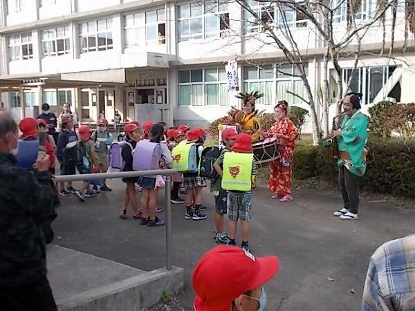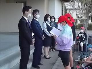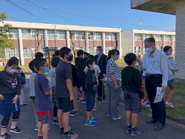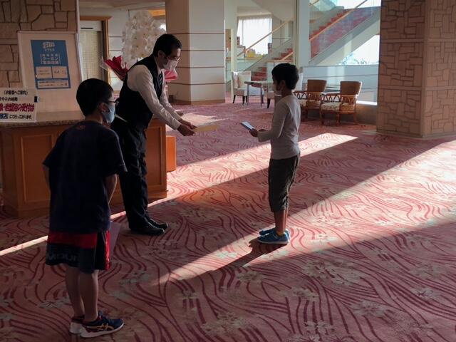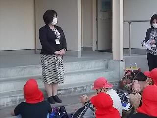代表の子どもがあいさつし、お礼のメッセージカードを渡しました。