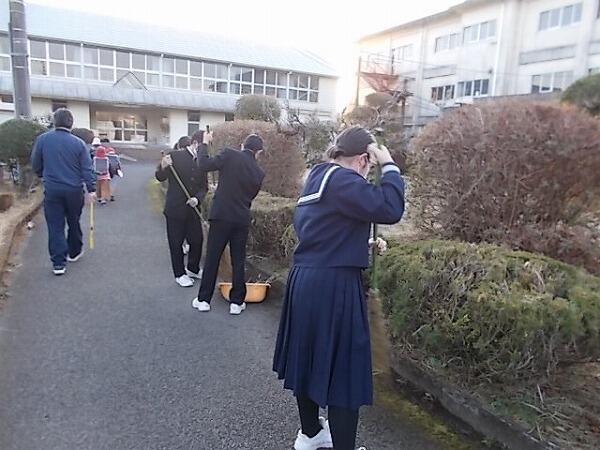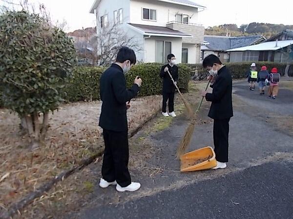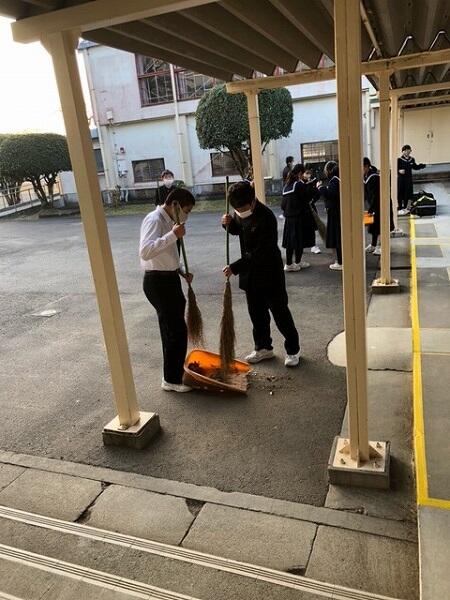 今朝のあいさつ運動、清掃活動