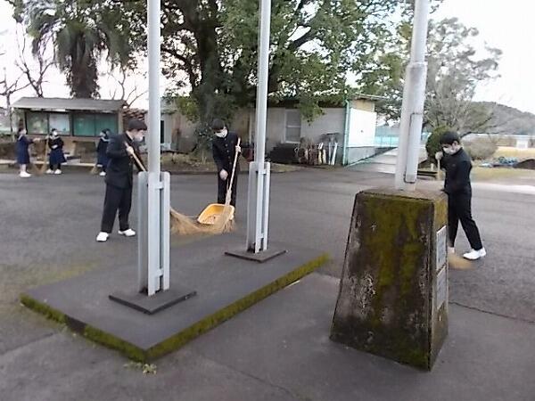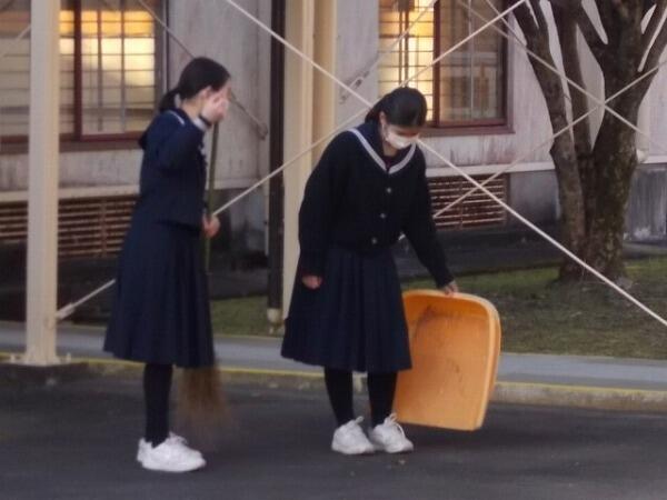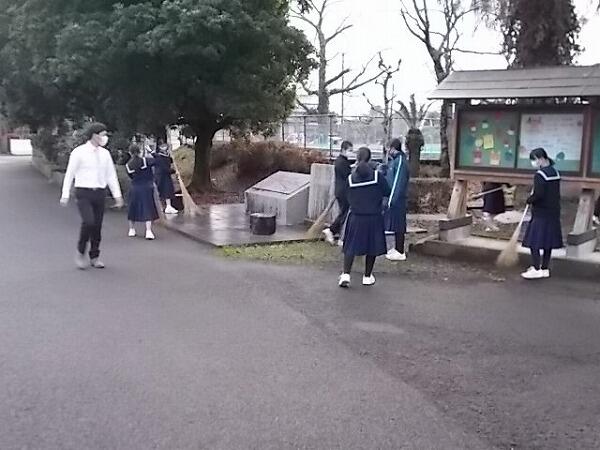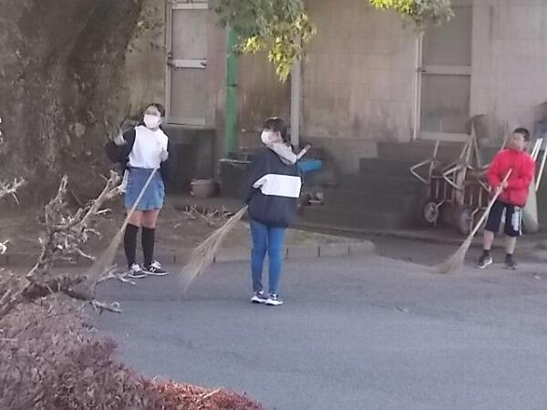 今朝のあいさつ運動、清掃活動の様子です。昨日は風が強かったので、落ち葉が散乱していいましたが、今朝の清掃活動でだいぶきれいになりました。