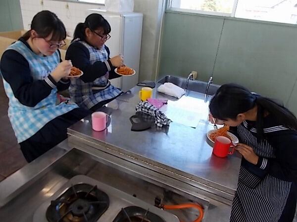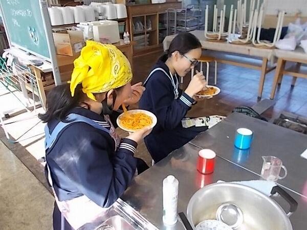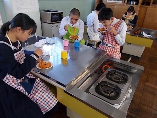今日の3,4時間目に中学部2年生は調理実習を行いました。「スパゲティナポリタン」を作りました。食品の無駄を少なくする工夫をしながら、手際よく作業を進めながらたいへんおいしそうなスパゲティナポリタンができあがりました。ぜひ、ご家庭でも作ってもらってください。