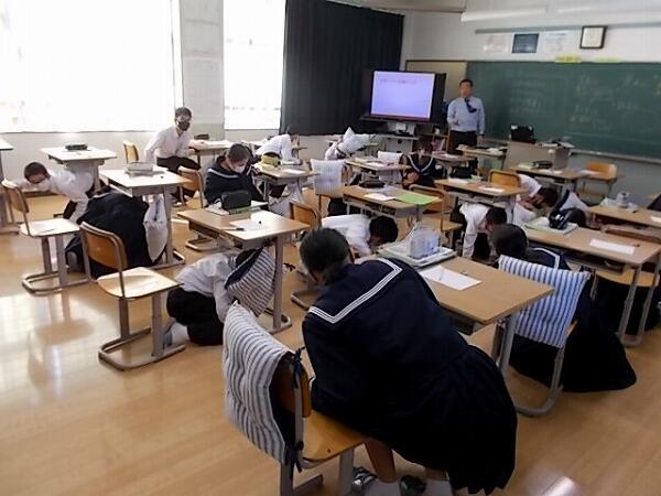 本日の10時から県民一斉防災行動訓練(シェイクアウト訓練)を三納小中学校でも行いました。