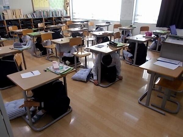 シェイクアウト訓練とは、2008 年にアメリカ・カリフォルニア州で始められた訓練で、事前登録した不特定多数の参加者が、 一斉にそれぞれの場所で安全確保行動(①まず低く、②頭を守り、③動かない)をとる 、住民等が主体的に参加する防災訓練です。