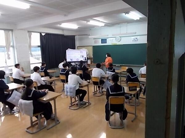 以上のことをねらいとして授業に取り組みました。毎回わかりやすい授業で、生徒は新たな気づきがあったようです。以下は授業の様子です。