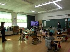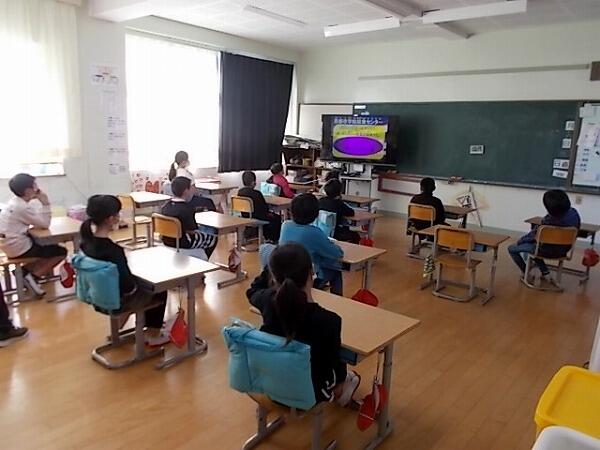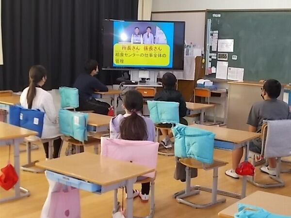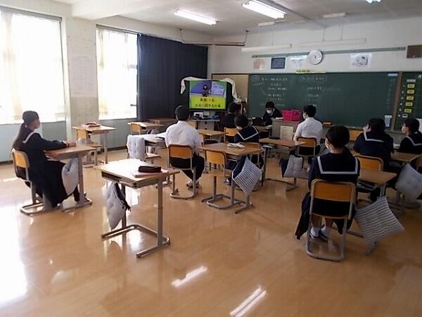 本日5校時目は給食感謝集会(各教室で実施。映像と放送で対応)でした。児童生徒の保体委員を中心に計画・準備してきました。給食センター職員の紹介や給食ができるまでの過程を各教室で映像を通して勉強しました。以下はそのときの様子です。