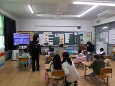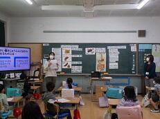 本日、小学部1年生を対象に、「うんちについて考えよう」という題材で授業を行いました。西都市給食センターから来られた栄養教諭の先生に授業をしていただきました。