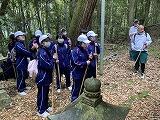 5月9日、中学部の3年生と1年生が、三納地区の歴史について学習しました。三納地域づくり協議会と三納っ子育成部のご協力を得て、実際に、三納地区内の史跡を巡りながら学習しました。