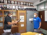 中学部では保健体育科担当教諭が、小学部は体育科主任が主に検査を行います。今日は、小学部体育科主任が朝7:30に、本日1回目の検査を行いました。