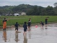 6月10日(金)、どろんこ祭りがありました。毎年恒例で、小学部5年生が田に入り、ボール遊びなどをします。