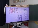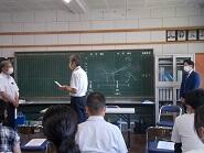 7月27日、先日とは違うグループ(3年生6人のグループ)の練習が行われました。発表の題は「働くって何だろう」です。職場体験学習の経験を基に、働くことの意義や働き方等について意見をまとめました。6人で協力して、学級担任の先生にも評価してもらいながら、よりよい発表に改善していくことができました。
