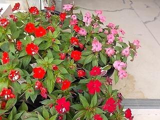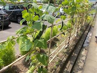 暑い夏ですが、学校玄関のサンパチェンスが元気に咲いています。学校花壇のホウキギやキュウリも元気に育ってます。土日も職員が学校に来て水をあげています。