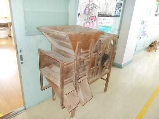 なんと昔の「脱穀機」と「唐箕」がありました。