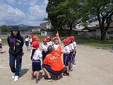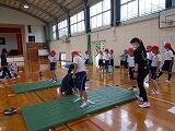 中学部の体育の先生も一緒に測定してくださいました。2年生の子どもたちに投げ方を分かりやすく説明していらっしゃいました。2回目のソフトボール投げの記録がグーンと伸びていました。