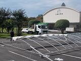 10月13日、三納ふるさと祭り(学習発表会)の準備が行われました。「座席の設置」「ステージづくり」「作品の展示」等、児童生徒で分担して行いました。また、地域の方々の作品も搬入され、こちらは、三納ふるさと祭り実行委員会の皆さんが行ってくださいました。業者の方による大型テントの設置も行われました。