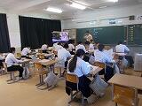 10月27日、食育の授業が中学部の3年生で行われました。授業は、妻中学校所属の栄養教諭の先生にしていただきました。今回のテーマは「受験期における食生活のポイント」です。受験を目前に控えた中学部3年生にとって、興味深い内容でしたので、一生懸命に授業を受けていました。