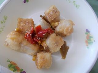 「魚のピリカラフル」は、赤、緑、黄色等のカラフル野菜の色が. 目にも楽しい料理です。ピリ辛の味付けで魚の. 苦手な子どもたちにも食べやすくなっています。