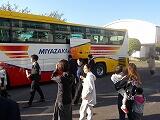 今回の修学旅行は、宮崎交通さんのバスでした。いつもの青いバスではなく、ひなた色のバスでした。普通の大型バスより車高が高く、大変快適でした。2台しかないバスだそうです。