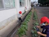 1年生は、生活科の授業で、野菜の観察をしていました。タブレットPCを用いて、学校園の野菜の写真を楽しそうに撮っていました。