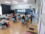 2年生は、音楽の授業でした。太鼓を使ってリズムの勉強をしていました。みんな太鼓を叩きたいようでした。