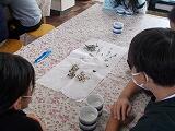 5年生は、家庭科の授業でした。出汁の勉強でした。煮干しを入れたお湯と、ただのお湯を飲み比べていました。