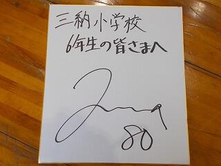 永田一真選手と広報の藤原さんが寄贈に来てくださいました。永田選手から夢を実現するために頑張ってきたことやチームプレーをする中で、「思いやりの心」を大切にしていることをお聞きしました。思いやりの心で人と接してほしいことやチームやクラスづくりをしてほしいとメッセージをいただきました。その後、永田選手と一人ずつボールパスをしました。大変貴重な体験となりました。