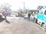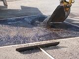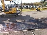 学校の敷地内のアスファルトが劣化し、あちらこちらに穴が開いて危険なので、舗装作業が行われています。学校にお越しの際はお気をつけください。