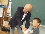小中全員分いただきました。小学部1年生の皆さんに代表して受け取ってもらいました。