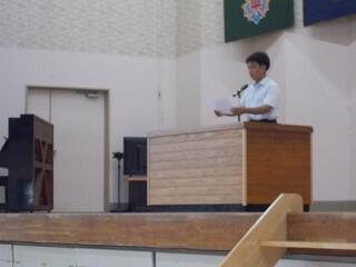本日8月26日は、2学期の始業の日でした。体育館での始業式では、代表児童生徒の作文発表から始まりました。小学3年生の児童は、クラスのみんなでなかよく助け合っていきたいことを発表していました。中学1年生は、自力登校を続けてがんばり、勉強や学校生活をがんばっていきたいことを力強く発表していました。