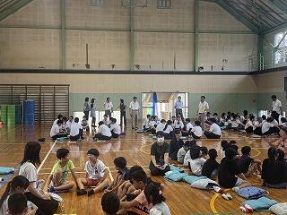 全員が体育館に避難した後、クラスごとに「もし家で一人だったらどうするか」など考える時間がありました。