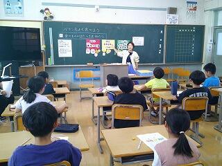 9月6日、西都市給食センターの栄養教諭 恵利先生をお招きして小学3、4年生の食育の授業がありました。