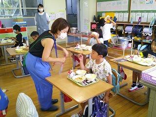 授業後の給食時間には、各クラスを回って箸の使い方をお話くださいました。